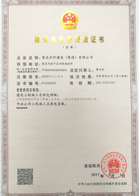 市政公用工程施工总承包壹级                      建筑工程施工总承包特级