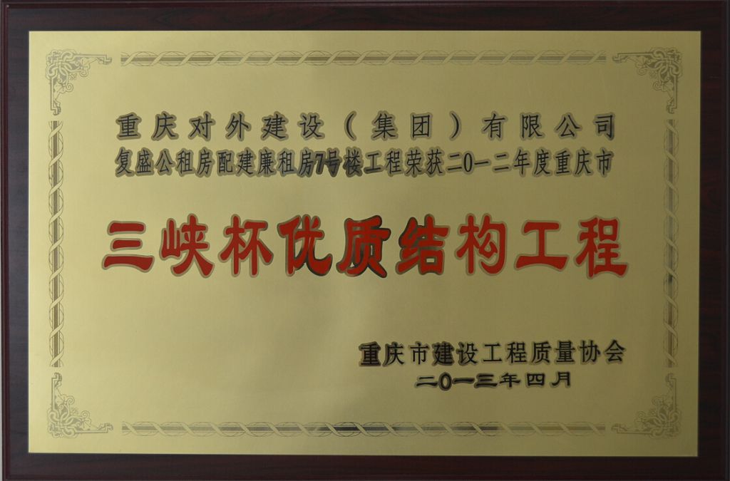 集团所属外建集团、渝信公司:国家优质工程奖、三峡杯优质结构奖