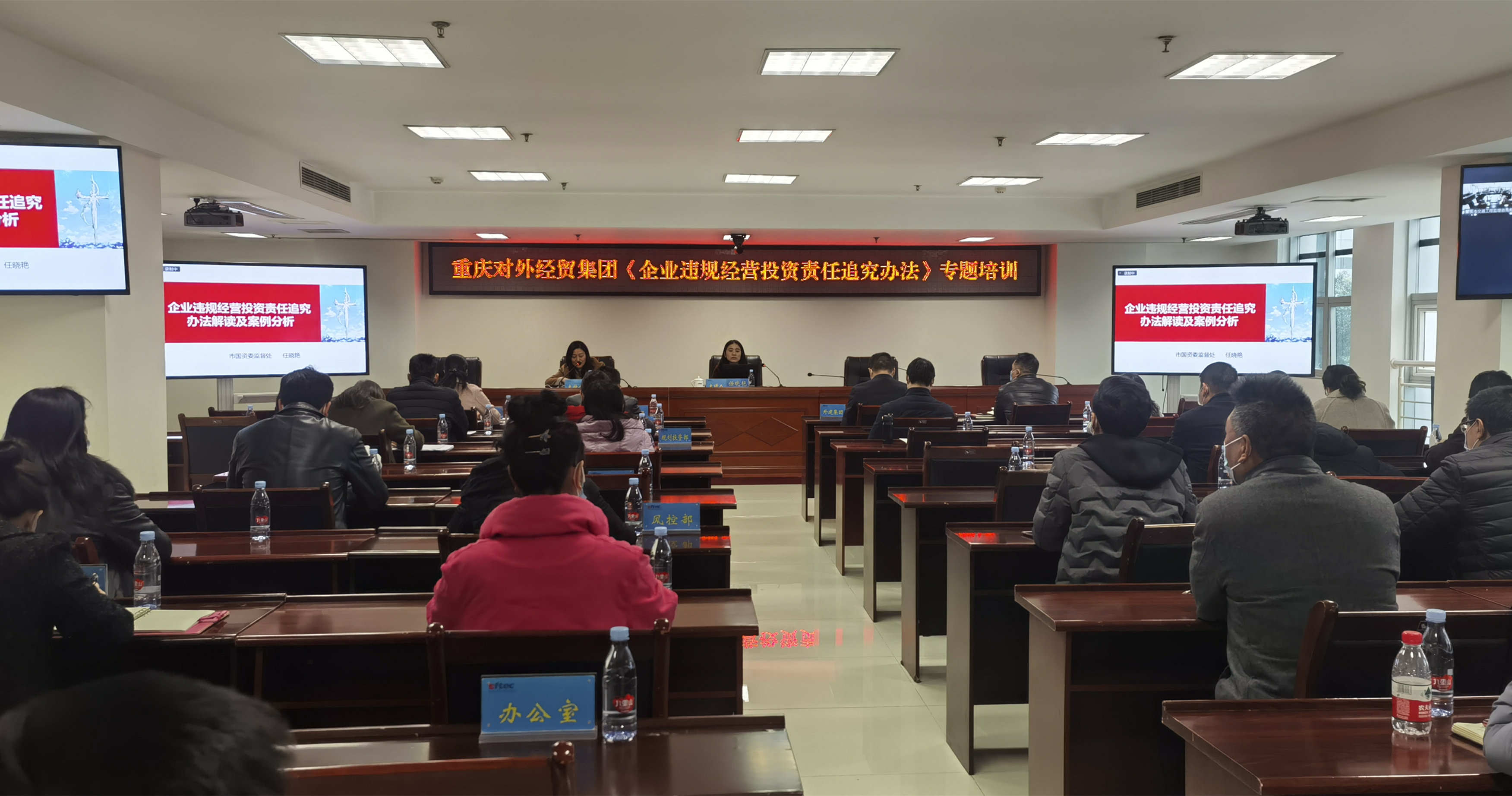 为增进健全以管资本为主的国有资产监管体制,进一步增强国有资产治理,不绝增强企业卖力人和事情人员对违规经营投资责任追究的事情意识,12月18日,集团开展《企业违规经营投资责任追究步伐》专题培训,特邀市国资委监督随处长任晓艳主讲。集团党委委员、财务总监张晓琴出席并主持培训。